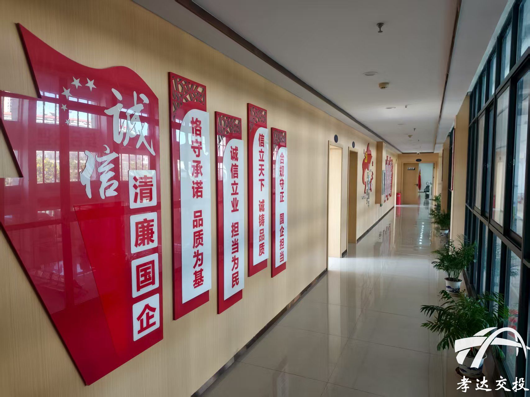 “誠信立業(yè)、擔當為民”“腳踏實地,躬身力行”……走進孝達交投辦公樓,清廉之風撲面而來,一幅幅圖文并茂的黨紀法規(guī)、廉潔警句、廉潔文化書法的標語映入眼簾。