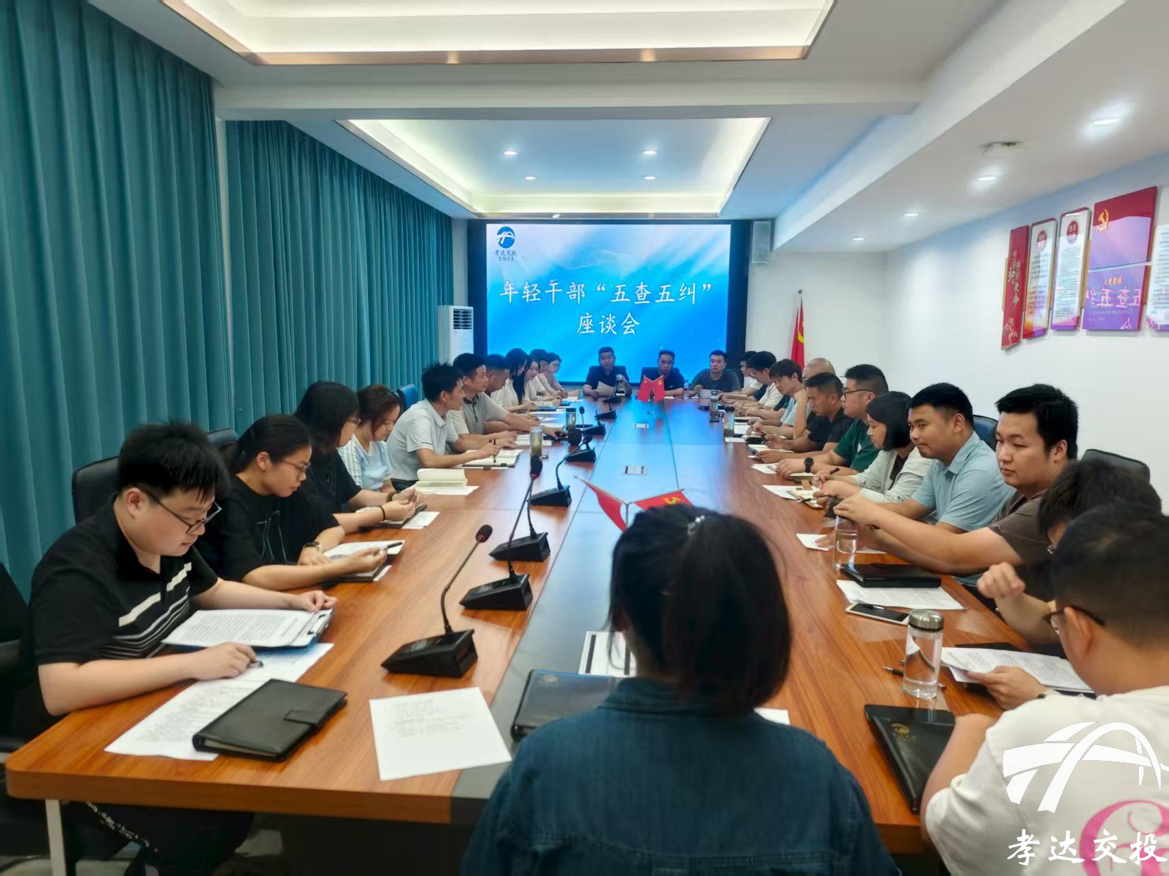 發(fā)布時(shí)間: 2025-08-06 09:15:00為進(jìn)一步加強(qiáng)對(duì)年輕干部的教育、管理和監(jiān)督,引導(dǎo)其系好廉潔從業(yè)“第一粒扣子”,8月5日,孝達(dá)交投組織27名35歲以下年輕干部召開(kāi)座談會(huì)。座談會(huì)聚焦年輕干部思想動(dòng)態(tài)、作風(fēng)表現(xiàn)、“五查五糾”等情況,進(jìn)行了一次深入的“政治體檢”和思想洗禮。公司紀(jì)委書(shū)記洪劍東,副總經(jīng)理殷國(guó)勝、張鋒出席會(huì)議。